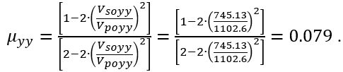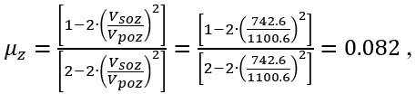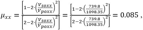 При розрахунку за Методом 6 коефіцієнт Пуассона μ визначається із відношення між швидкостями розповсюдження поперечних та поздовжніх динамічних хвиль і розраховується за формулами: