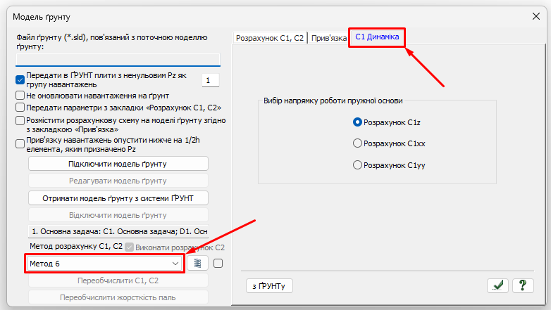 У ЛІРА-САПР 2024 (система ҐРУНТ) реалізовано новий метод розрахунку коефіцієнта жорсткості пружної основи С1 (Метод 6), який дозволяє врахувати вплив динамічних коливань на пружні властивості ґрунту. В основі цього методу лежить модель Пастернака, згідно з якою коефіцієнт пружної основи С1 розраховується за формулою: