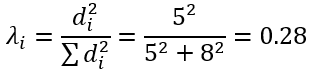 Швидкості в довільній точці навантаження знаходяться шляхом просторової інтерполяції, використовуючи вагові коефіцієнти, обернено пропорційні квадрату відстані.