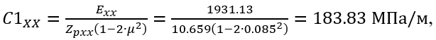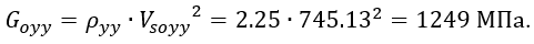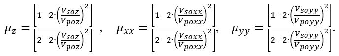 Де Vsoz, Vsoxx, Vsoyy – швидкість розповсюдження поперечних хвиль, Vpoz, Vpoxx, Vpoyy – швидкість розповсюдження поздовжніх хвиль.