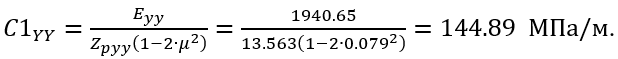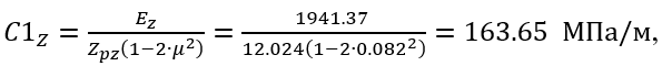 Використовуючи формули (2), (3), (4) з розділу 1, розрахуємо значення коефіцієнтів пружної основи С1: