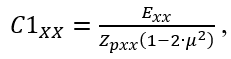 При розрахунку коефіцієнтів пружної основи C1Z, C1XX, C1YY із формул 2, 3, 4, – використовуються значення ефективних модулей пружності, які розраховуються за формулами: