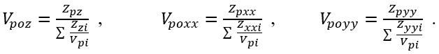 Усереднені значення питомої ваги ρz, ρxx, ρyy знаходяться аналогічно: спочатку, використовуючи формули (17) з розділу 1, визначаються значення питомої ваги у кожній точці навантаження, а потім знаходяться середні арифметичні з усіх значень ρz, ρxx, ρyy у кожній точці навантаження.