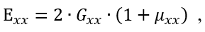 Де Gz, Gxx, Gyy – значення ефективних модулей зсуву, що визначаються за формулами: