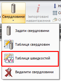 Формат введення вхідних даних у діалозі “Таблиця швидкостей” наступний: