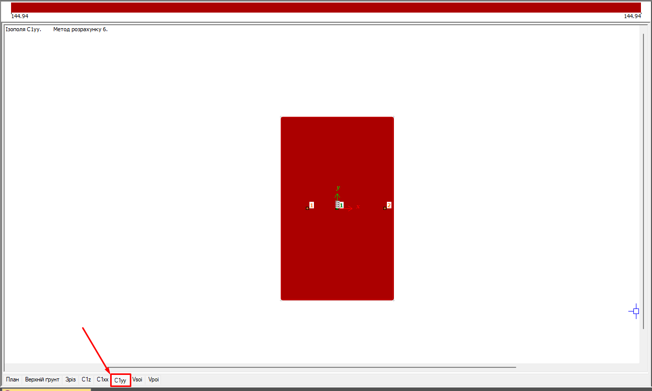При натисканні на вкладки C1z, C1xx, C1yy, є можливість побачити значення ізополей коефіцієнтів пружної основи, які були розраховані за формулами (34), (35), (36).