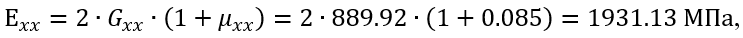 Використовуючи формули (11), (12), (13) з розділу 1, розрахуємо значення ефективних модулей зсуву Gz, Gxx, Gyy: