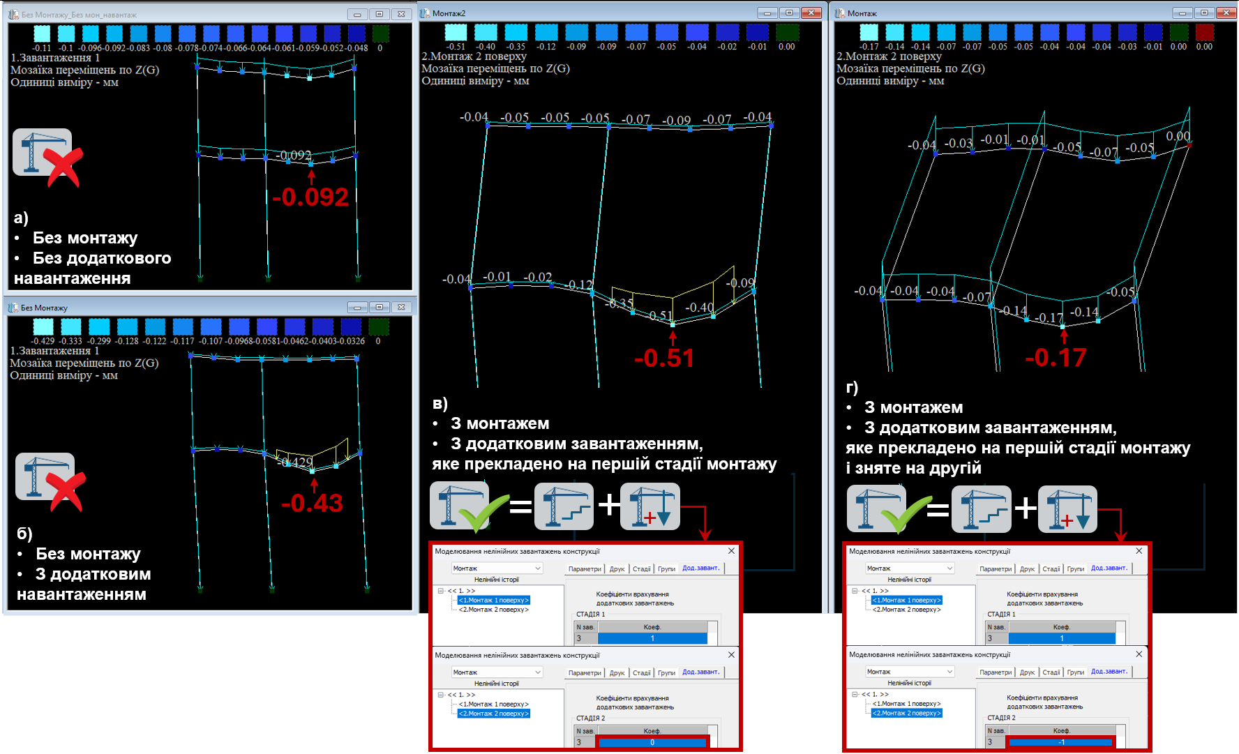 Моделювання процесу зведення дозволяє дослідити зміни НДС не тільки на стадії експлуатації, але і на стадії зведення конструкції. При цьому додатково є змога: