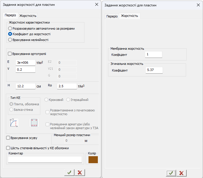 Таблиця 2. Жорсткісні характеристики. Пластини