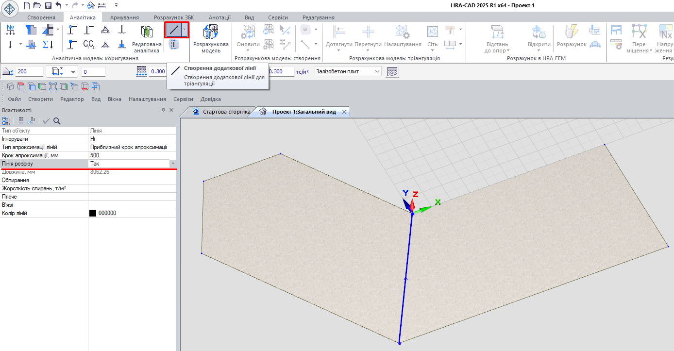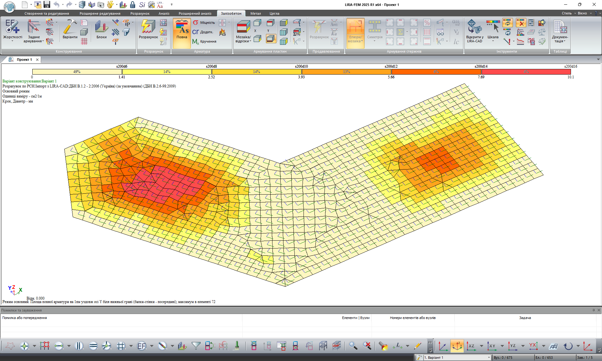 Далі, як зазвичай, переходимо до розрахункової моделі. Виконуємо перетин, потім тріангуляцію і відкриваємо отриману розрахункову схему в LIRA-FEM, де після розрахунку отримуємо мозаїку армування (рис. 5).