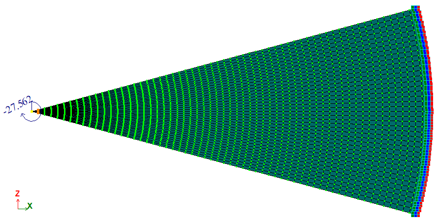 Для прикладання зосередженого моменту у вершині клину група вузлів була об'єднана в абсолютно жорстке тіло.