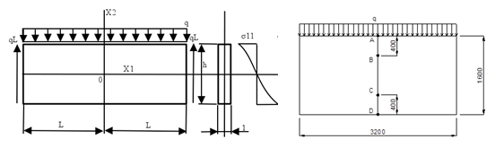 Визначити напруження σ11 у балці-стінці на гранях, а також на відстані 0,4 м від них (точки A, B, С і D).