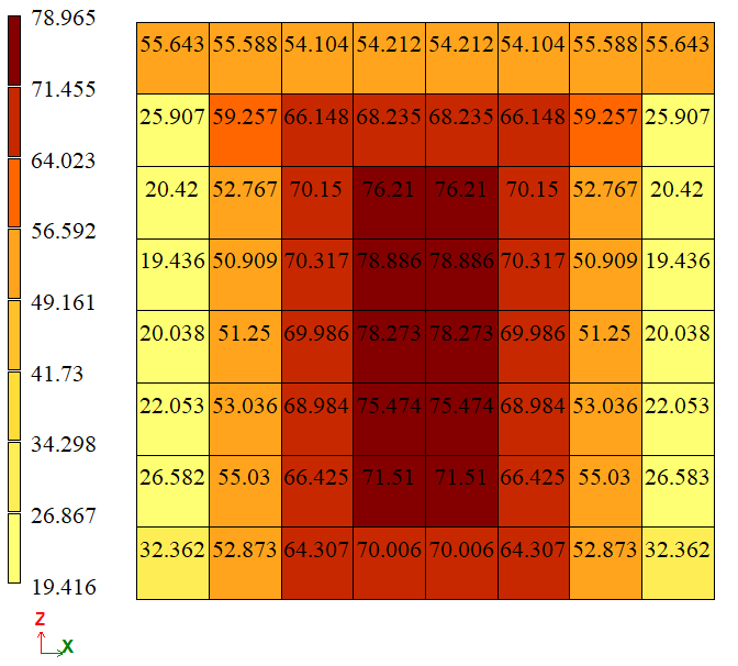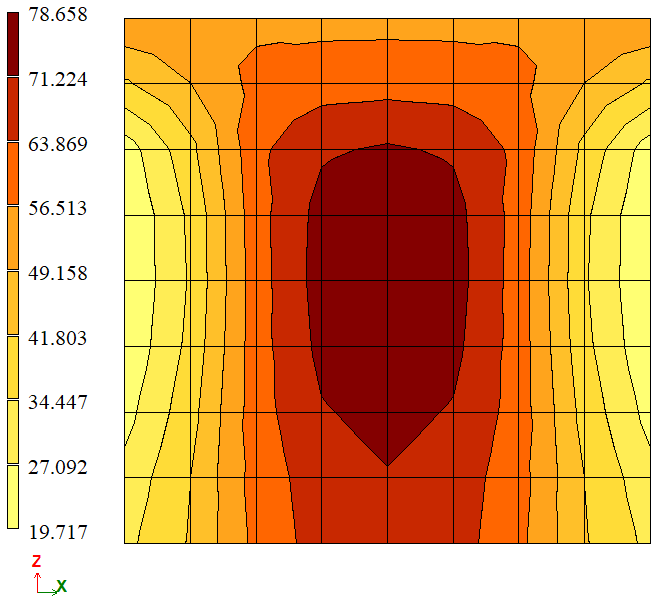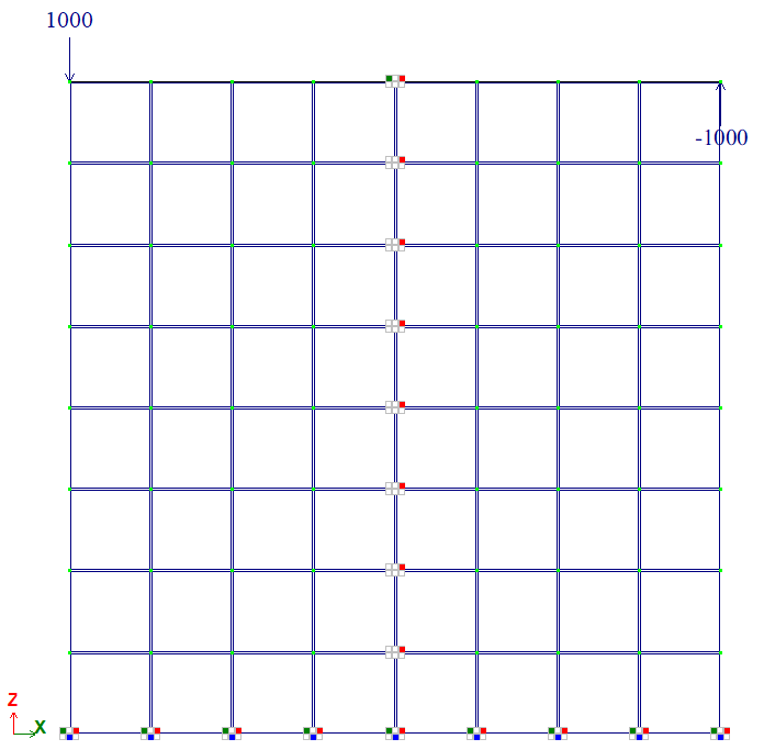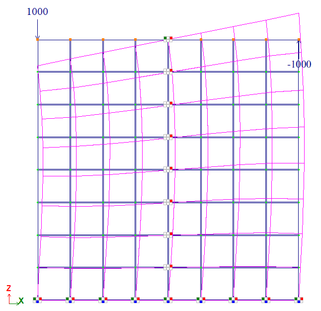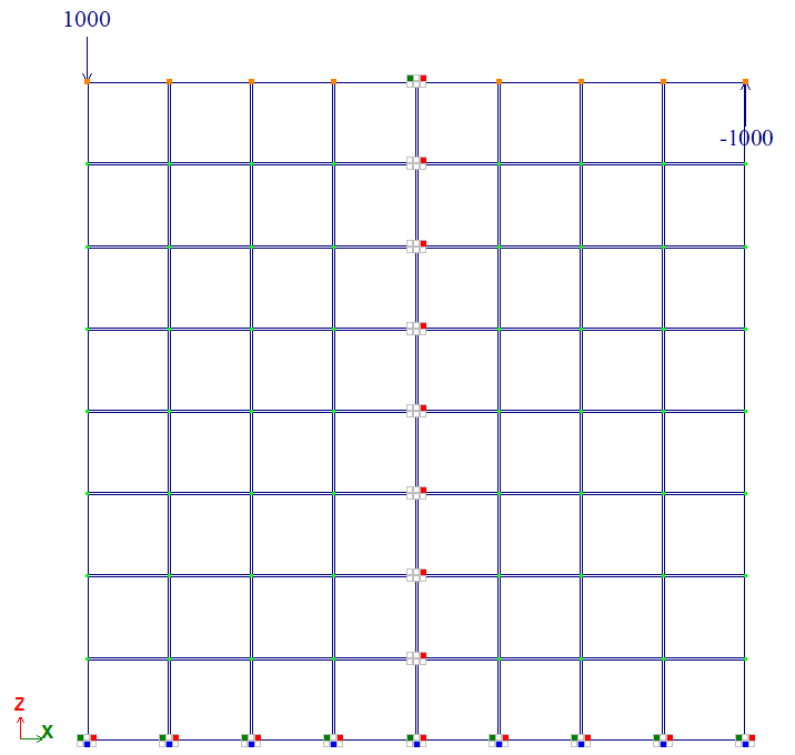 В центрі по вертикалі вузли забороняють переміщення по осі Z (Z=0).