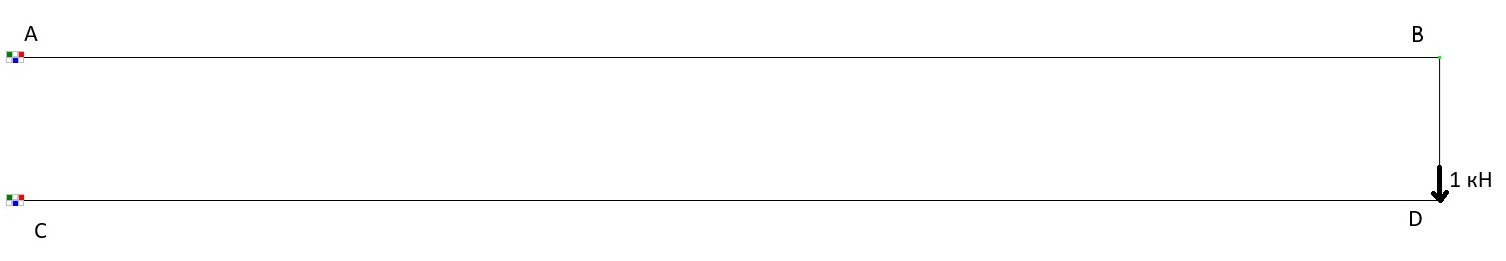 Жорсткість горизонтальних і вертикального стержнів на розтяг-стиск (E*A) прийнята зі значеннями 1,0 * 1012 Н, жорсткість вертикального стержня на згин (E*I) прийнята зі значенням 1,0 * 1012 Н*м2.