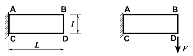 Консольна рама складається з двох горизонтальних стeржнів однакової довжини L, защемлених по одним кінцях (точки A, C) та об'єднаних вертикальним стeржнем довжиною l по інших кінцях (точки B, D).