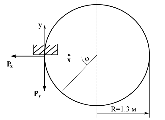 Розрізне кругове кільце навантажується двома взаємно перпендикулярними силами Px і Py, що лежать у площині осі кільця.