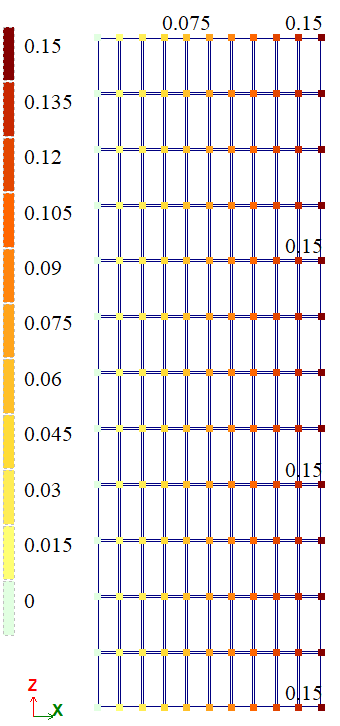 Рівномірно розподілене по торцях навантаження F/A = 100 Па.