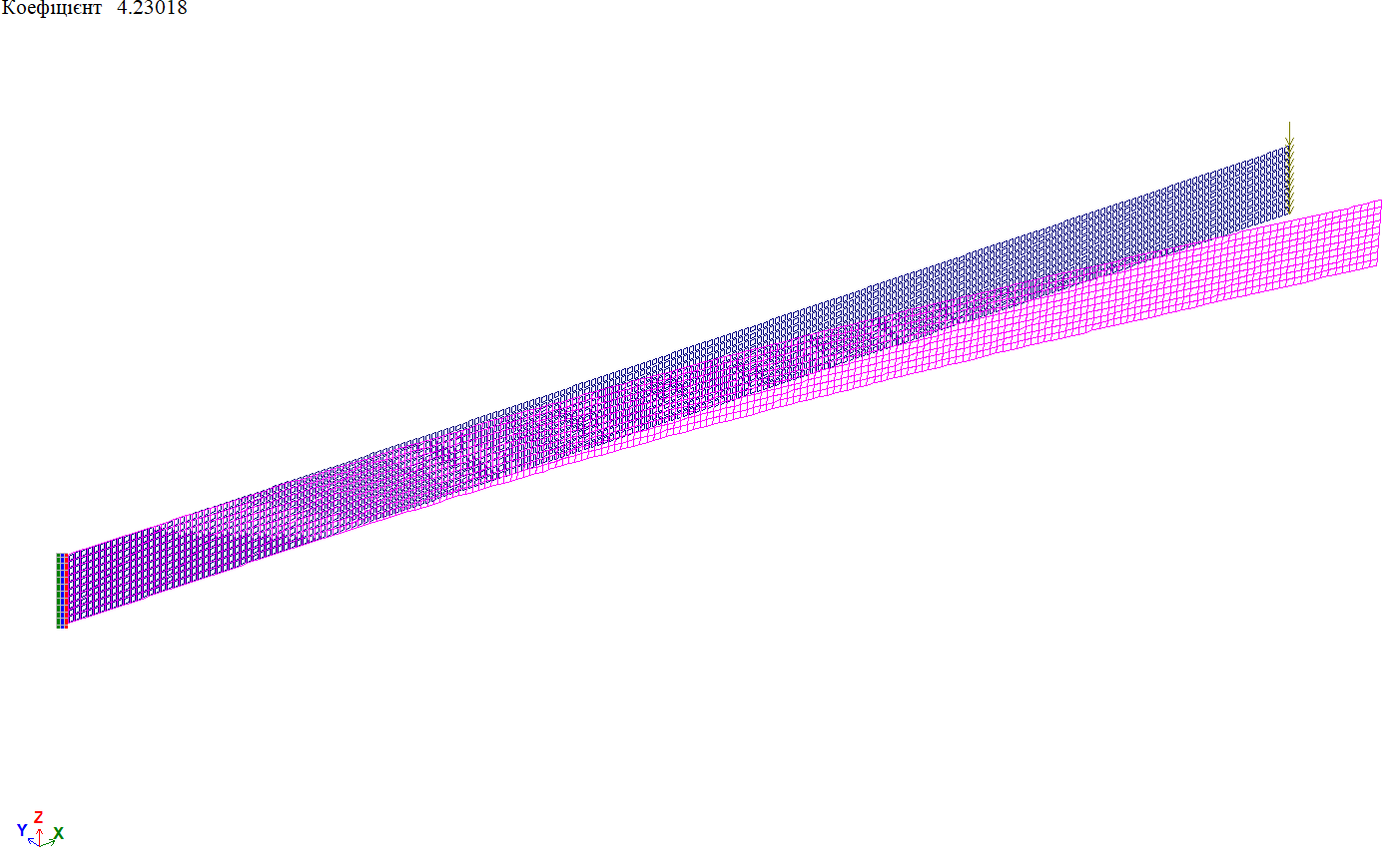 Визначення коефіцієнта запасу стійкості консольної смуги прямокутного перерізу під дією розподіленої поперечної сили, прикладеної до вільного торця.