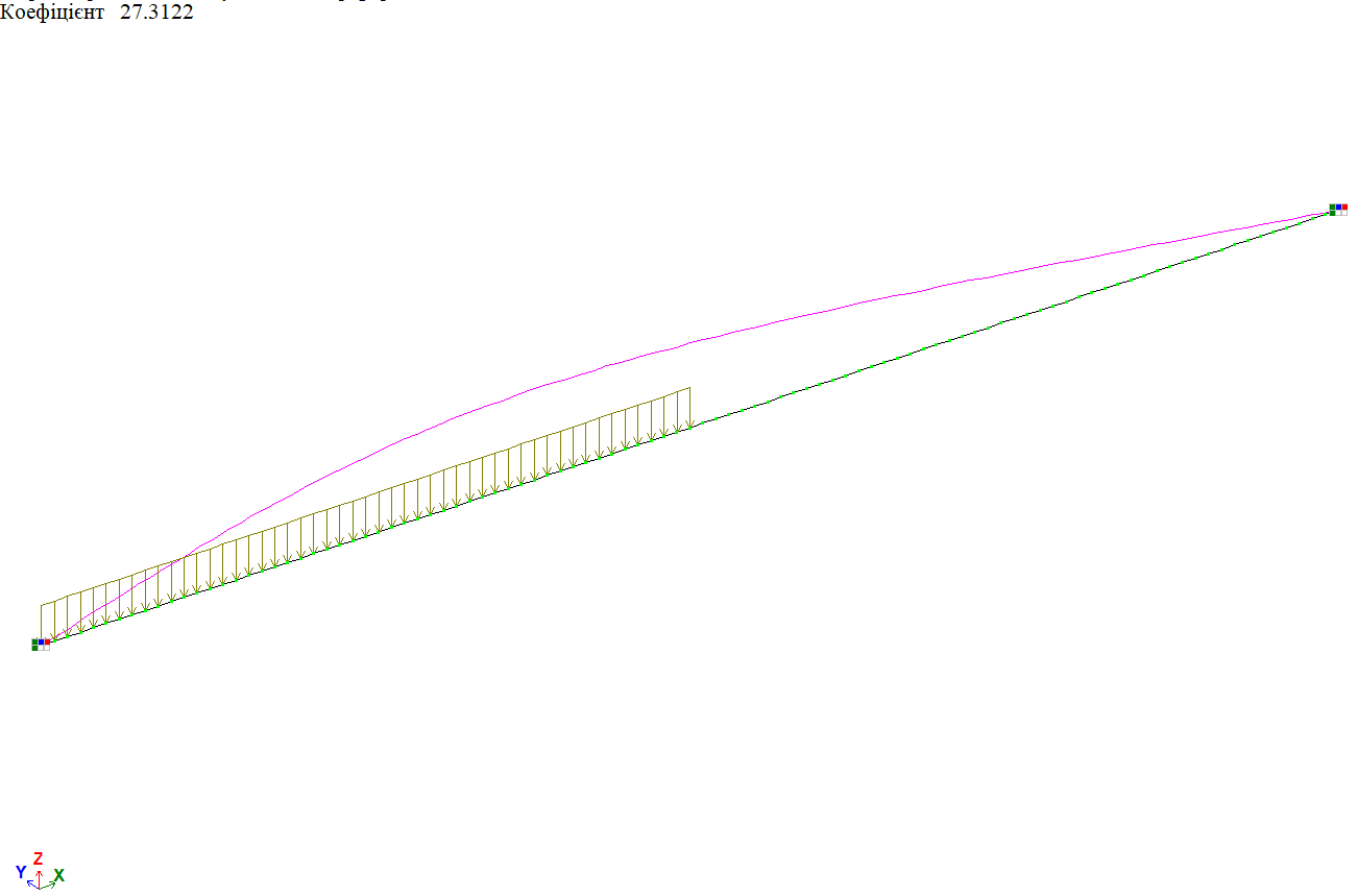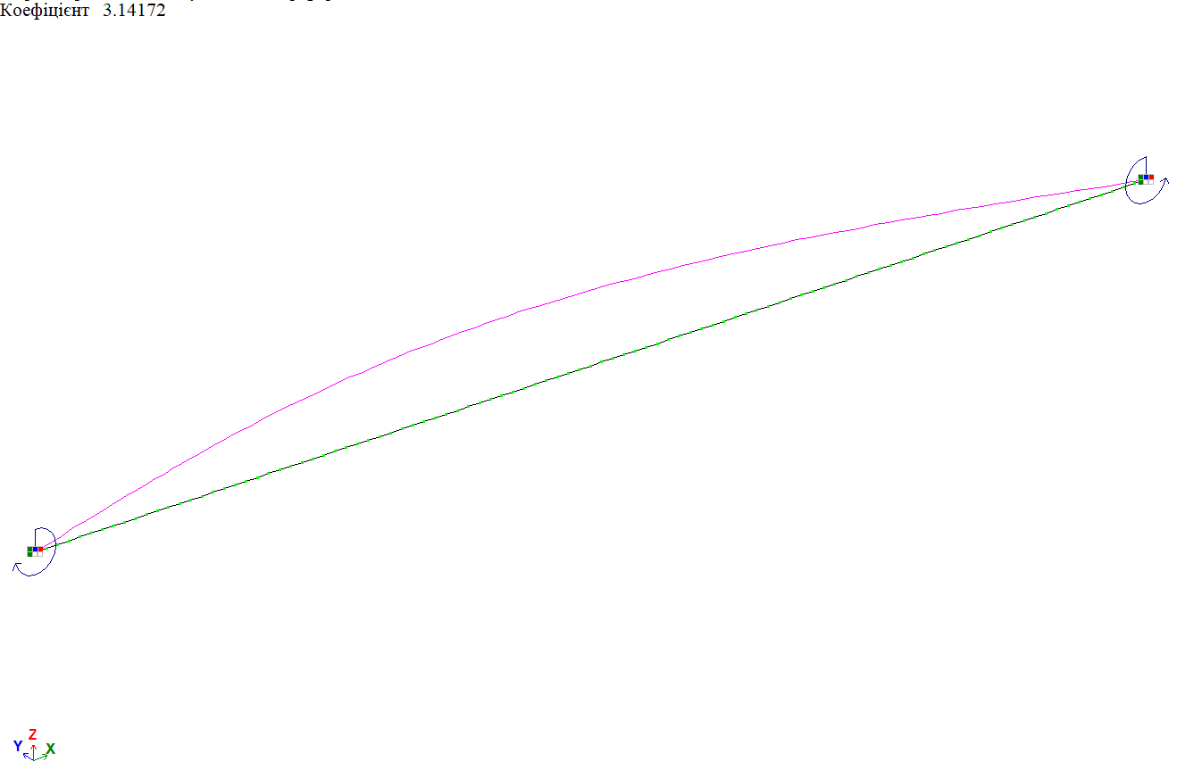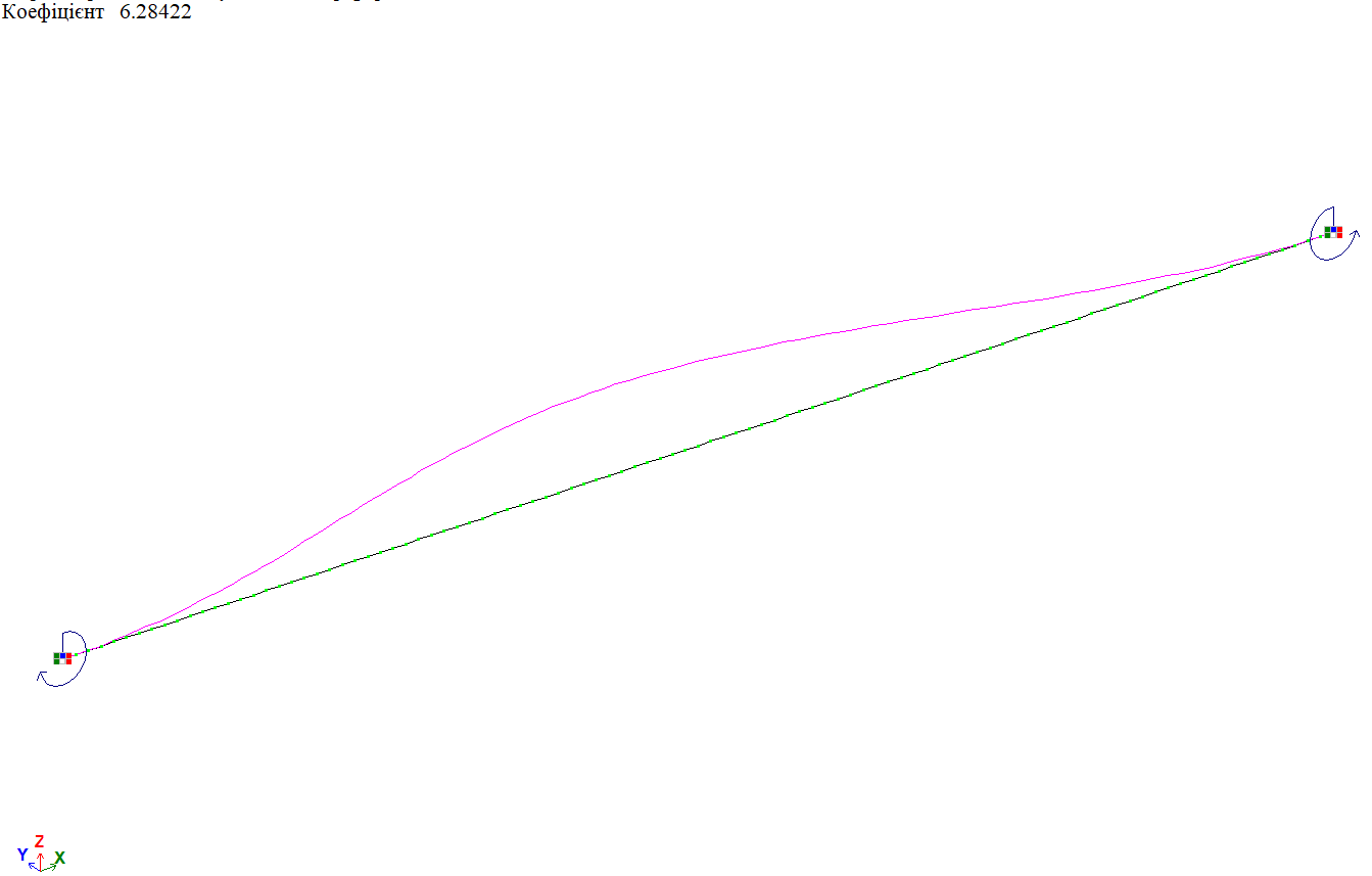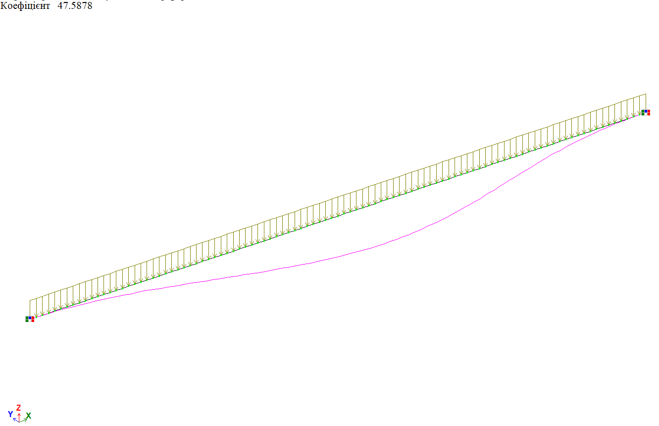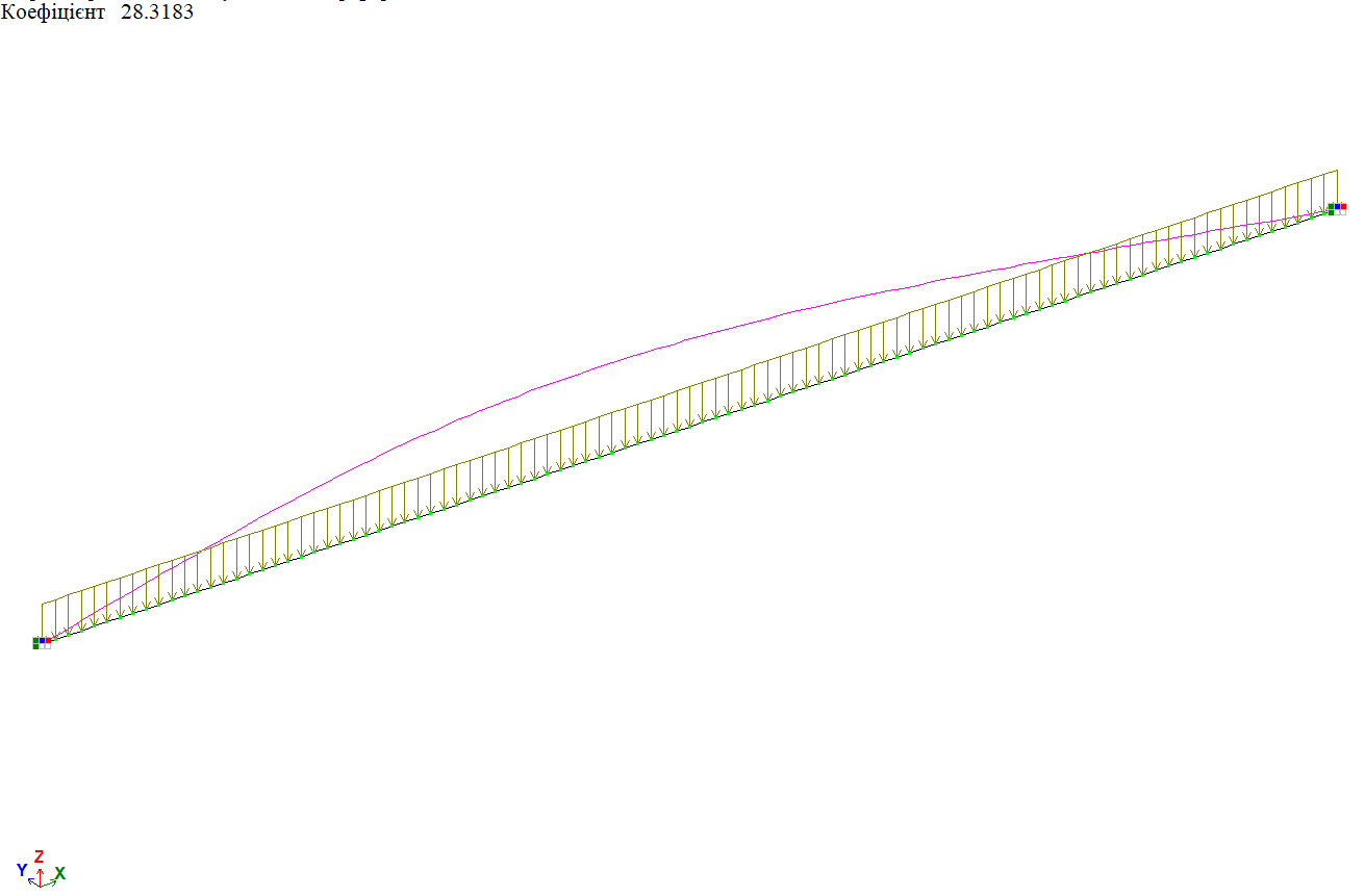 Форма втрати стійкості від дії рівномірно-розподіленого навантаження f по всій довжині балки, варіант закріплення 1