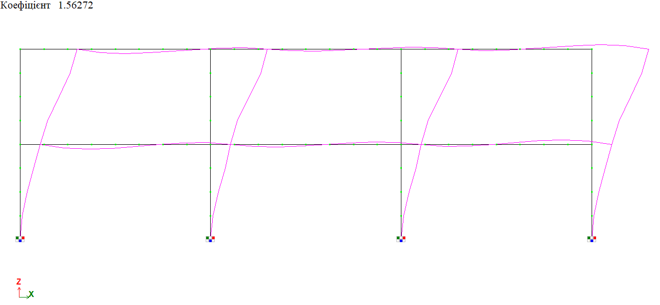 Визначення критичного значення зосереджених поздовжніх сил, що діють на стійки трипролітної двоповерхової рами у вузлах сполучення з ригелями, що відповідає моменту втрати її стійкості.