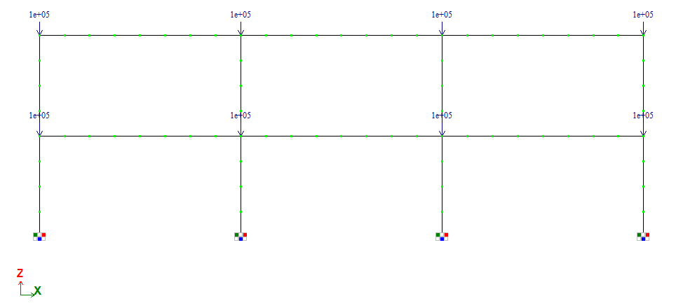 Початкове значення зосереджених поздовжніх сил на стійки рами у вузлах сполучення з ригелями P = 1*105 кН.
