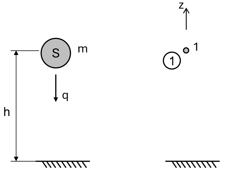 Жорсткий шар масою m падає з висоти h на гнучку поверхню жорсткістю k (Rz).