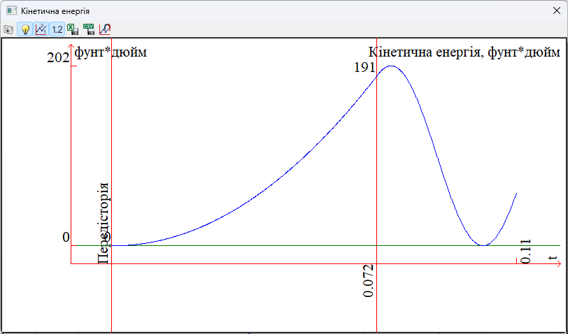 | Кінетична енергія, фунт-дюйм | 192,64604 | 191 | 0,85 | |