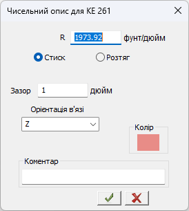 Жорсткість на осьовий стиск k (Rz) = 1973,92 фунт/дюйм = 5,357 кг/см.