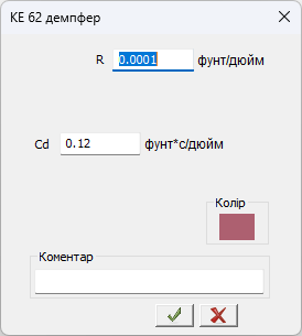 Коефіцієнт в'язкого демпфування Сd = 0,12 фунт*с/дюйм= 0,02142 кг*с/см.