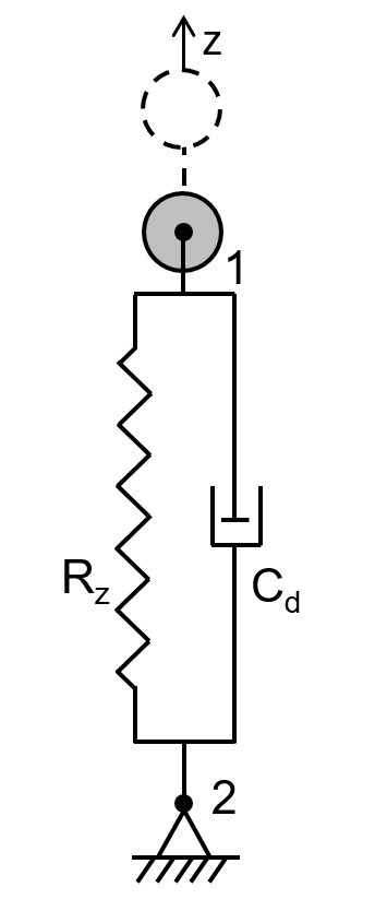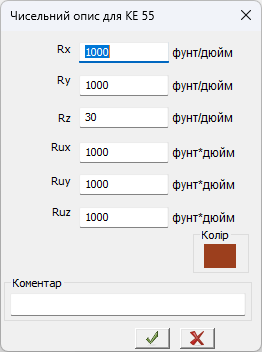Для побудови схеми використані СЕ 55 – двовузловий СЕ пружних в'язей між вузлами та СЕ 62 – двовузловий СЕ в'язкого демпфування.