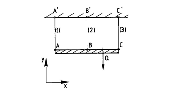 Абсолютно жорстка балка на трьох пружно-пластичних підвісках, завантажена зосередженою силою.