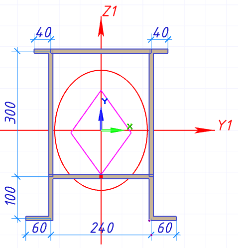 Для тонкостінного напівзамкнутого поперечного перерізу перевірити точність обчислення геометричних характеристик.