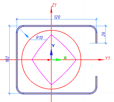 b = 12 см; h = 10,2 см; c = 2,6 см; r = 1 см; t = 0,2 см.