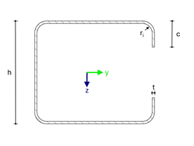 Для тонкостінного холодногнутого С-подібного поперечного перерізу перевірити точність обчислення геометричних характеристик.