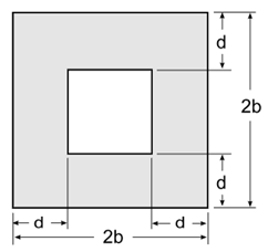Для суцільного квадратного поперечного перерізу з отвором перевірити точність обчислення геометричних характеристик.