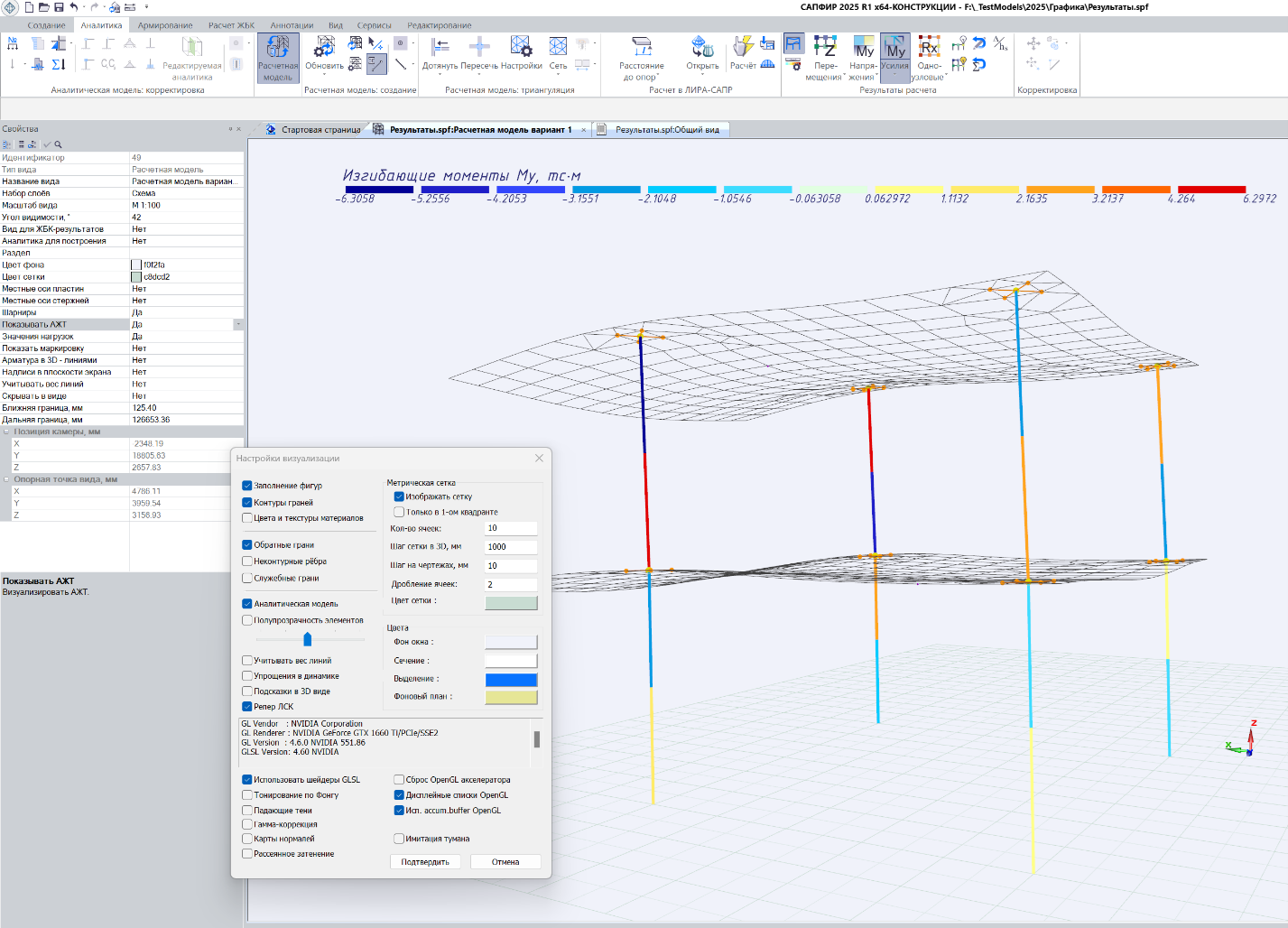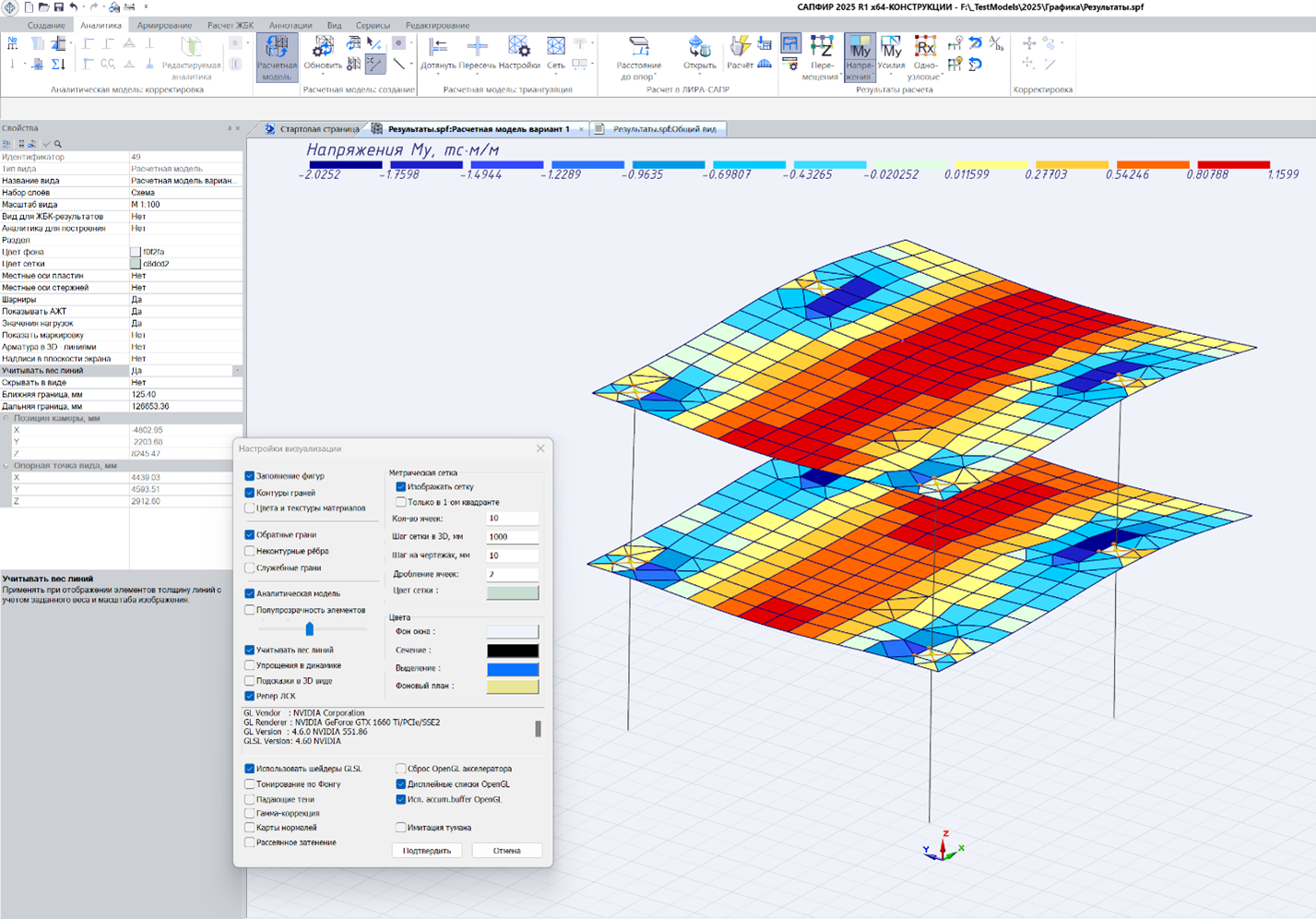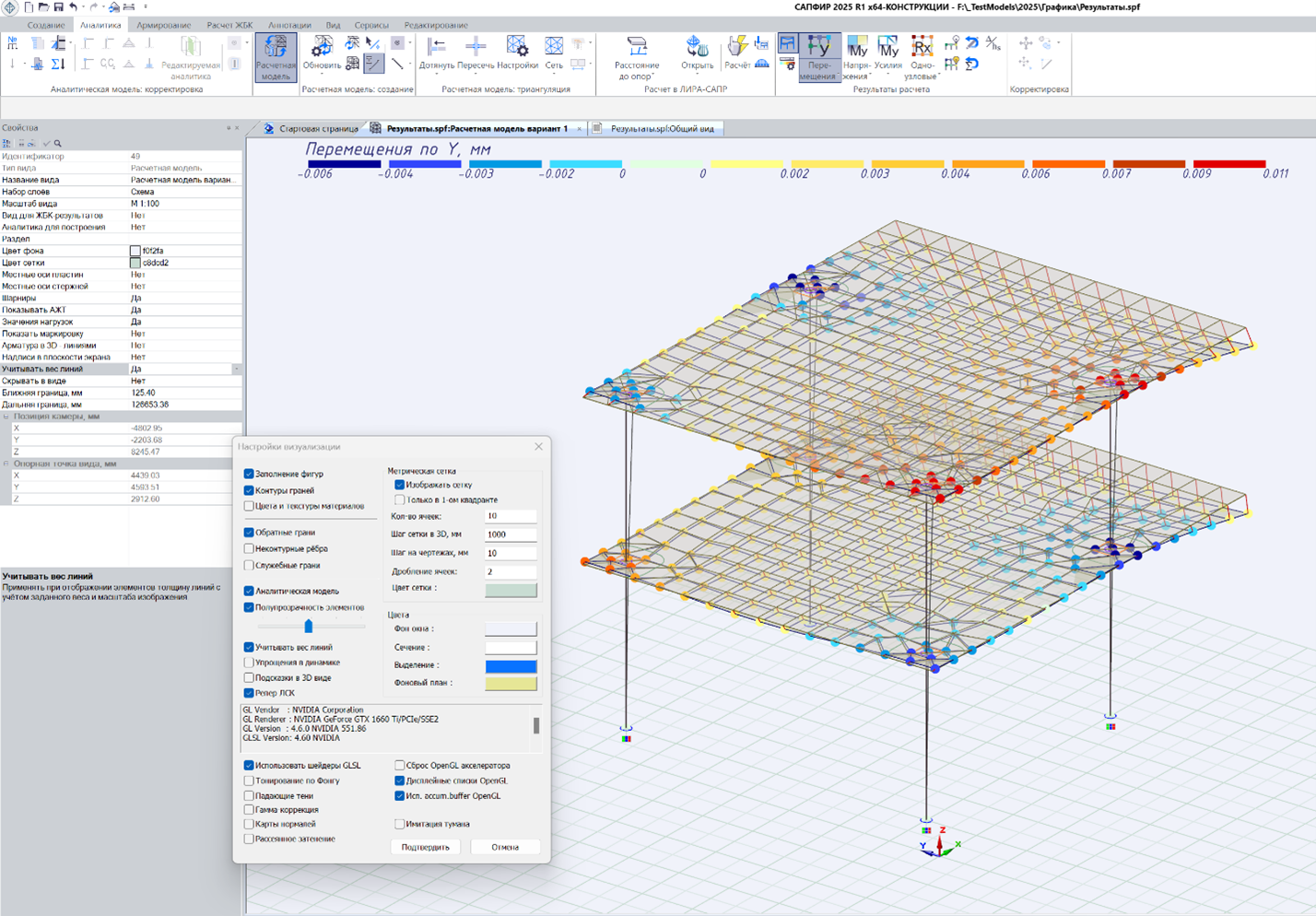 Версія LIRA-CAD 2025 отримала оновлене графічне ядро, засноване на застосуванні технологій шейдерної графіки. Відповідно, режими візуалізації з використанням шейдерів доступні й при огляді аналітичної розрахункової моделі з результатами розрахунку.