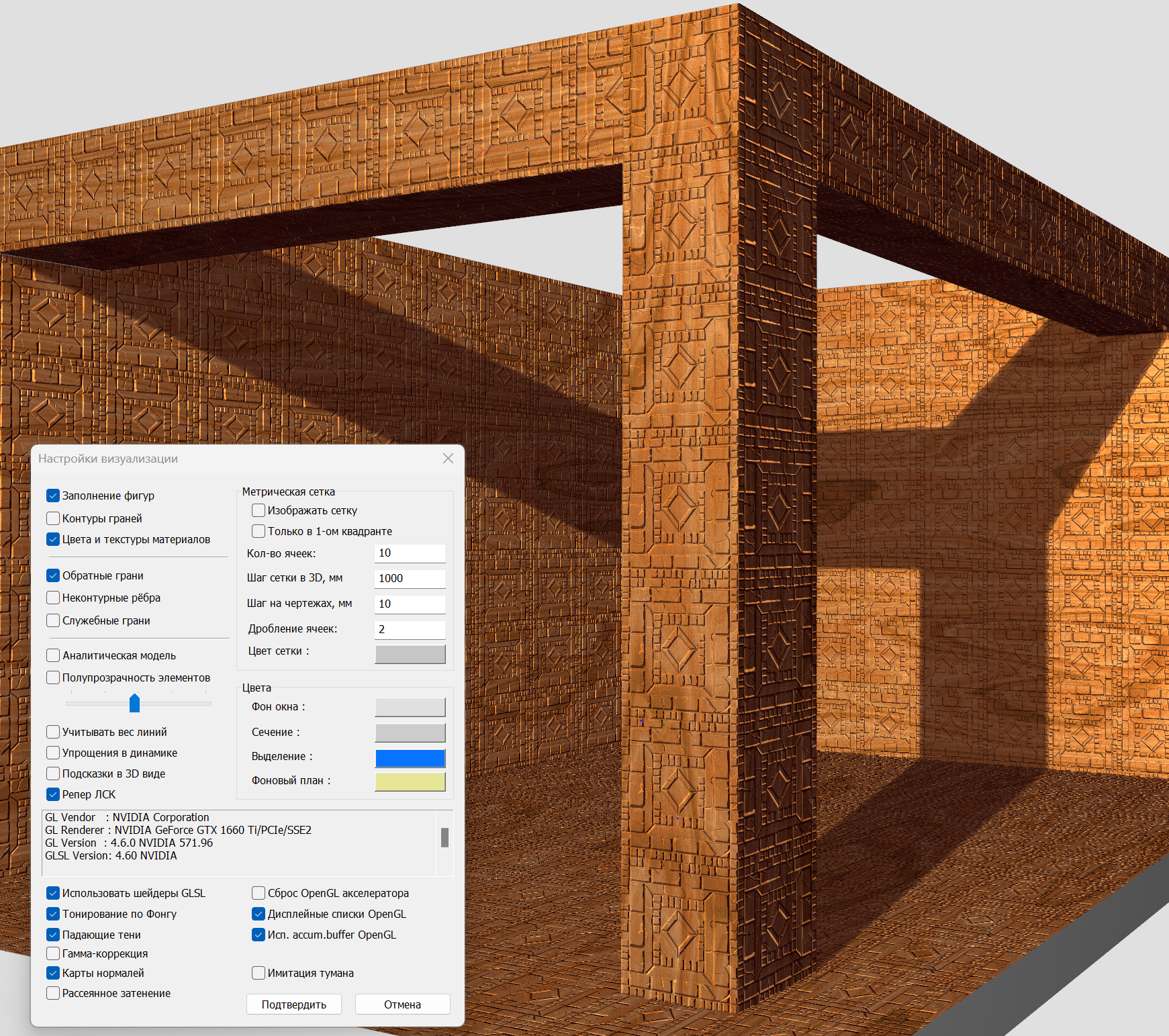 Використання шейдерної графіки за стандартом OpenGL 4.6 дозволило суттєво підвищити швидкість отримання зображення проектованих об'єктів. Це робить більш комфортною роботу проектувальника з великими проектами, насиченими деталями.