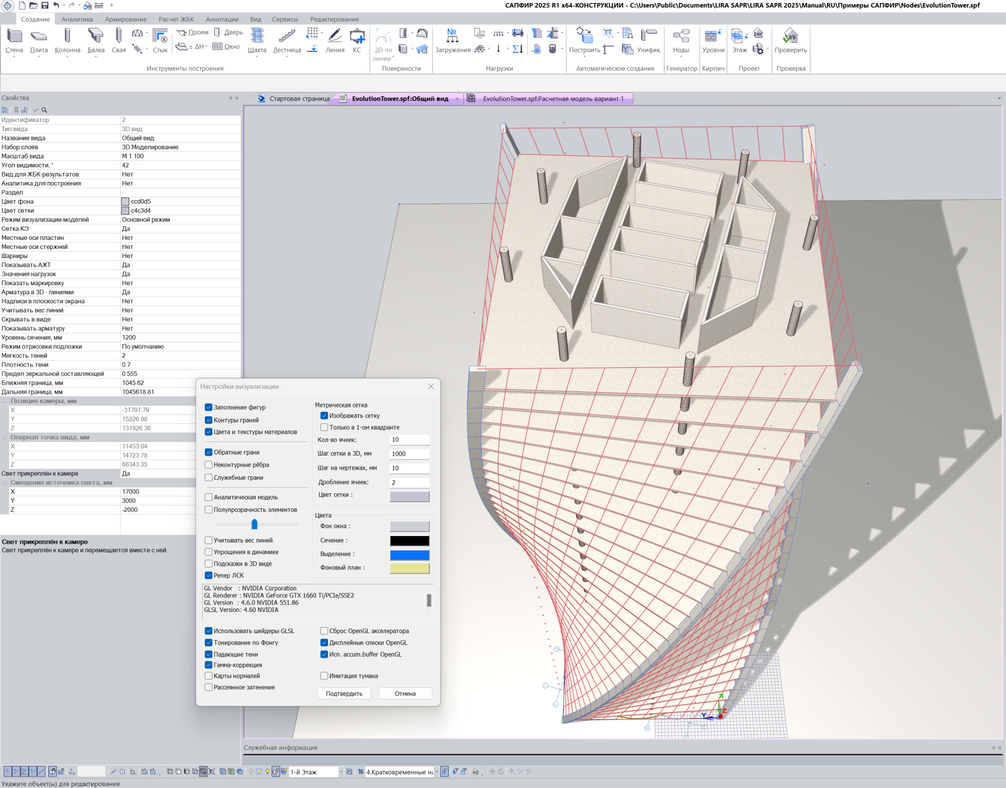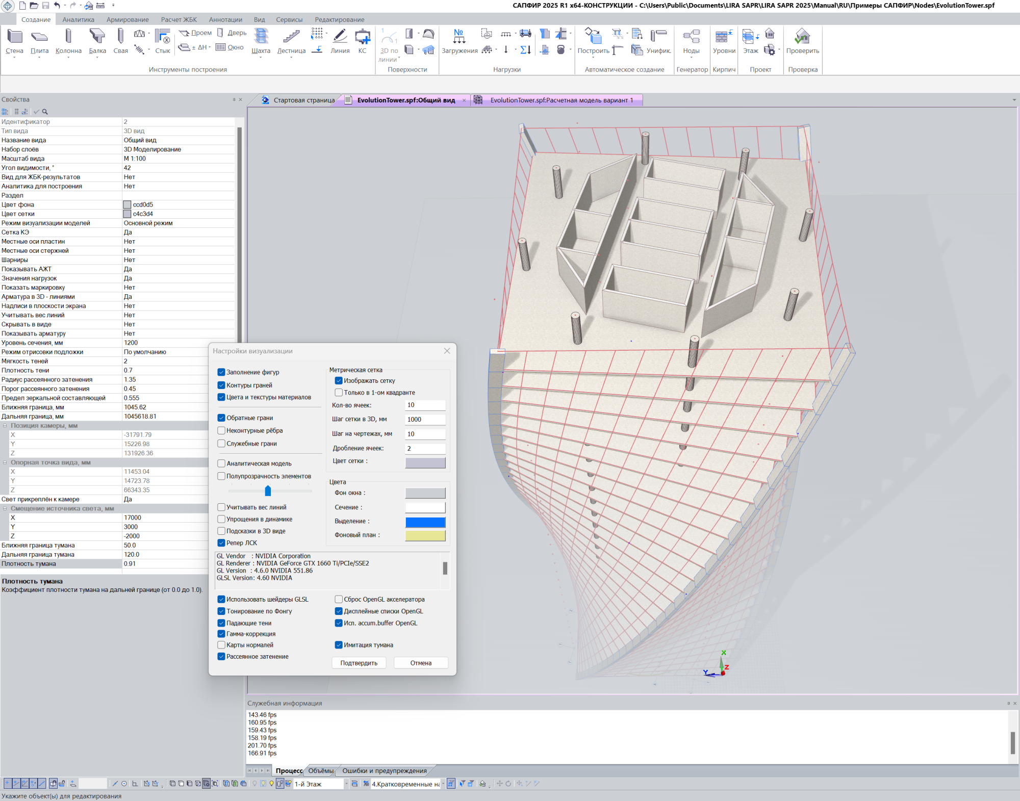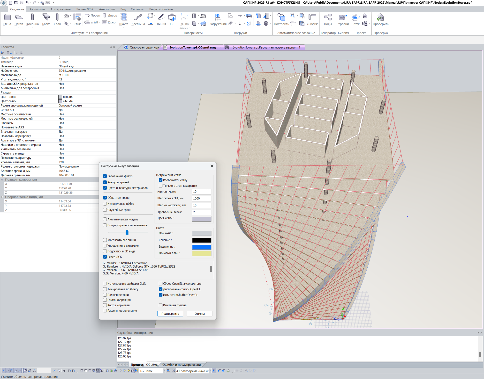 Для версії LIRA-CAD* 2025 суттєво оновлено графічну підсистему, що забезпечує базову графіку та візуалізацію моделі проектованого об'єкта.